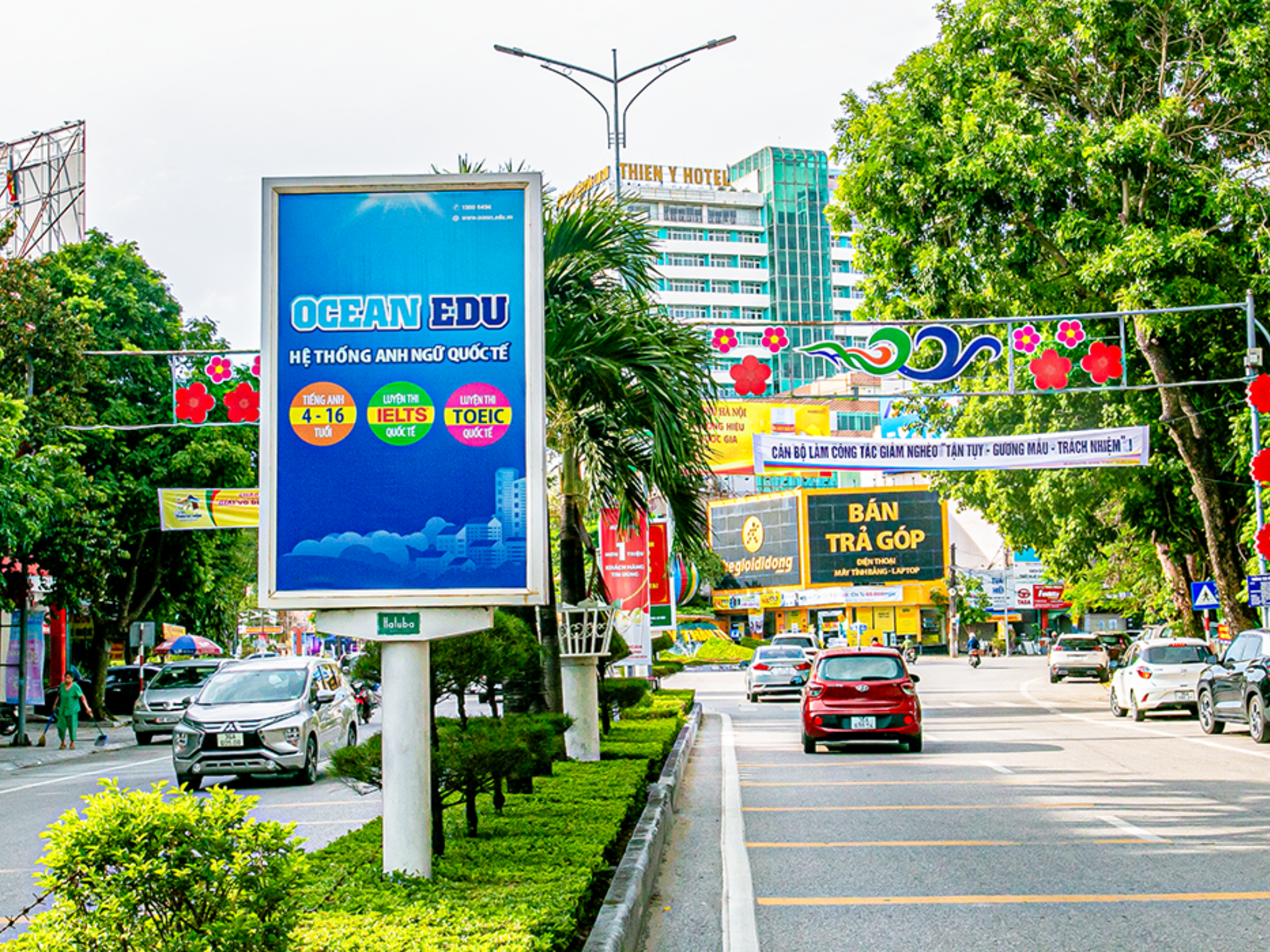 Vị trí đặt biển tại các trục đường chính như QL1A, Đại lộ Lê Lợi, gần các trung tâm hành chính, thương mại và khu dân cư đông đúc, giúp tối đa hóa khả năng tiếp cận của biển quảng cáo. Màu xanh đặc trưng của Ocean Edu kết hợp cùng hiệu ứng ánh sáng mềm mại không chỉ thu hút sự chú ý mà còn tạo ấn tượng chuyên nghiệp, gần gũi với phụ huynh và học viên.